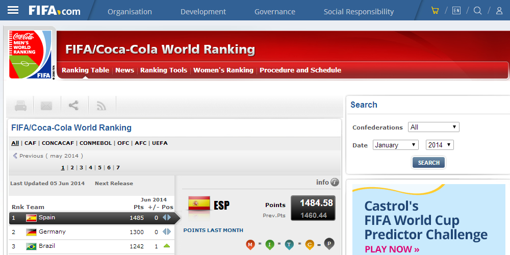 【関連リンク】 FIFA コカ・コーラ ワールドランキング(外部サイト)