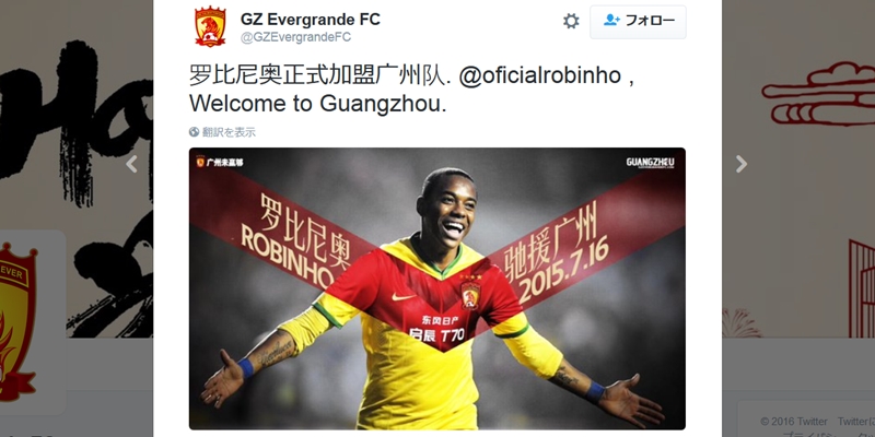 昨年は突如中国の広州恒大に加入し、クラブワールドカップにも出場したことで大きな話題を集めたロビーニョ。