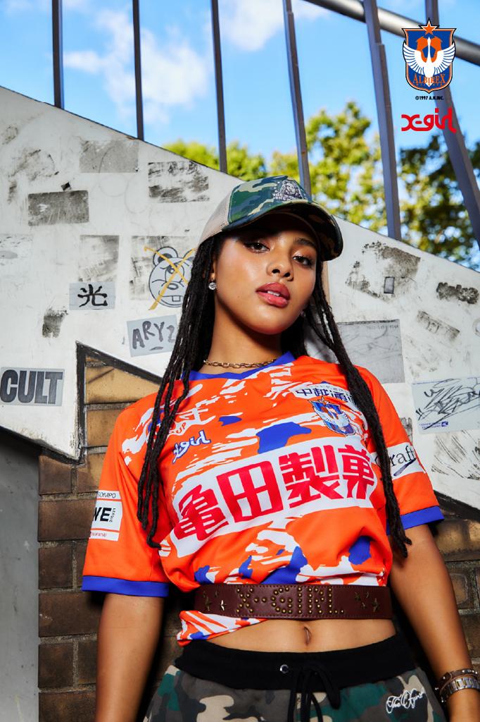 新潟県が発祥であり、県の鑑賞魚にも制定されている「ニシキゴイ」から着想を得て、錦鯉の模様をストリートらしいカモフラージュ柄にブラッシュアップ。ホームタウンである新潟県の形や、さらなる飛躍をするという強い思いを込めた白鳥をグラフィックの中に組み込んだ。