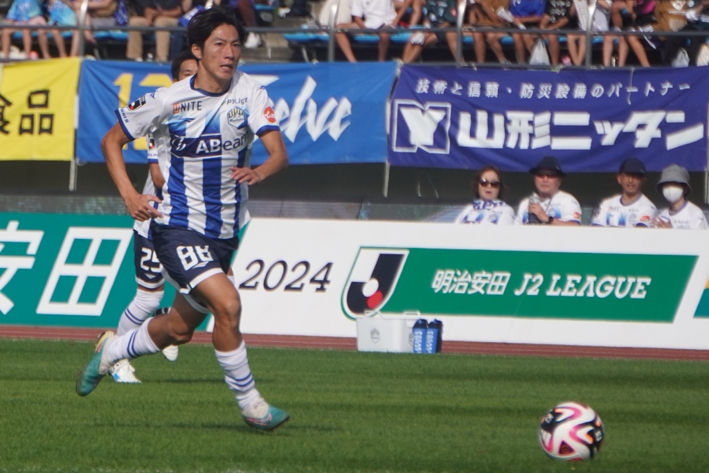 今季も山形で戦う土居だが、チームの低迷に苦しんでいる。現在順位は20チーム中13位とJ1昇格PO圏内との勝点差は12と離れているが、主将としてチームをまとめて奮闘している。