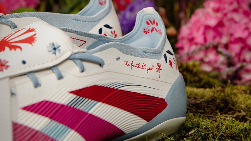 最新の『プレデター ELITE』をベースに、スパイク全体が刺繍からインスピレーションを得た華やかなグラフィックで彩られている。